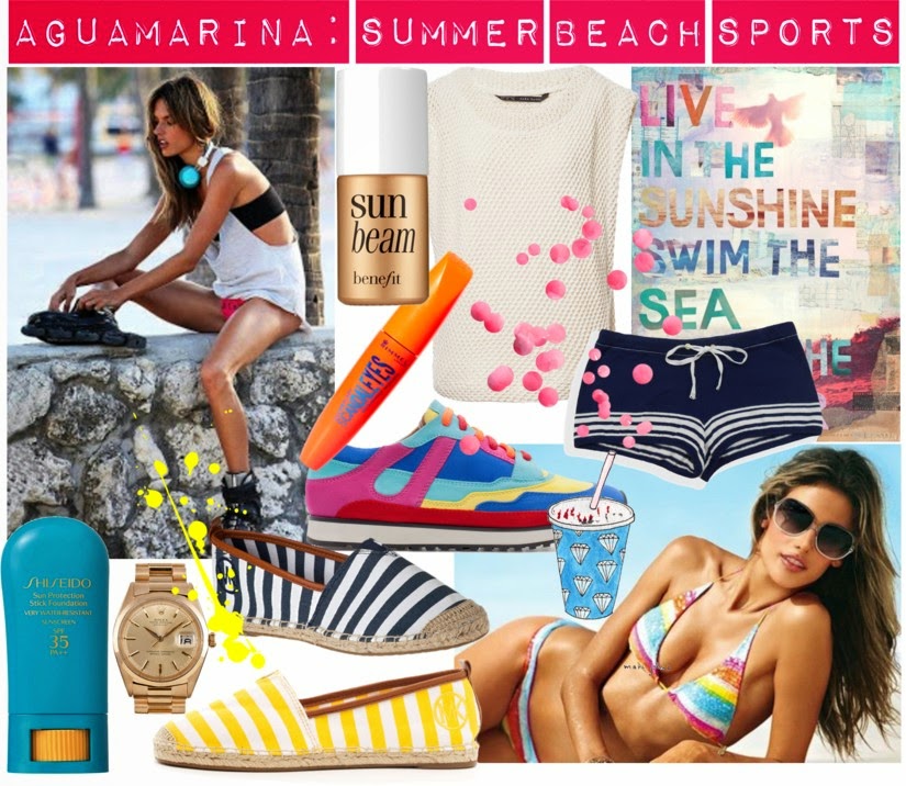 Zara top, €46 / Sperry Top-Sider short shorts, €70 / Zara shoes, €69 / MICHAEL Michael Kors espadrille flat, €58 / MICHAEL Michael Kors striped shoes, €58 / Benefit bronzing powder, €23 / Rimmel waterproof mascara, €8,23 / Shiseido , €21