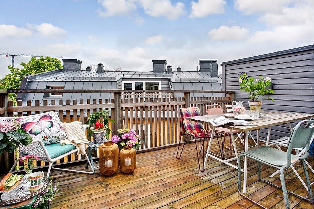 Hoy nos levantamos en clave DECO! Ya sabéis que me gusta «trascar» en webs de decoración y hoy he encontrado este coqueto piso que tiene una terraza ideal ¿no os parece? Estoy deseando tener la reforma de nuestra casa lista para poder disfrutar ya de la terraza ahora que llega el verano… voy cogiendo ideas para decorarla!