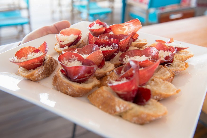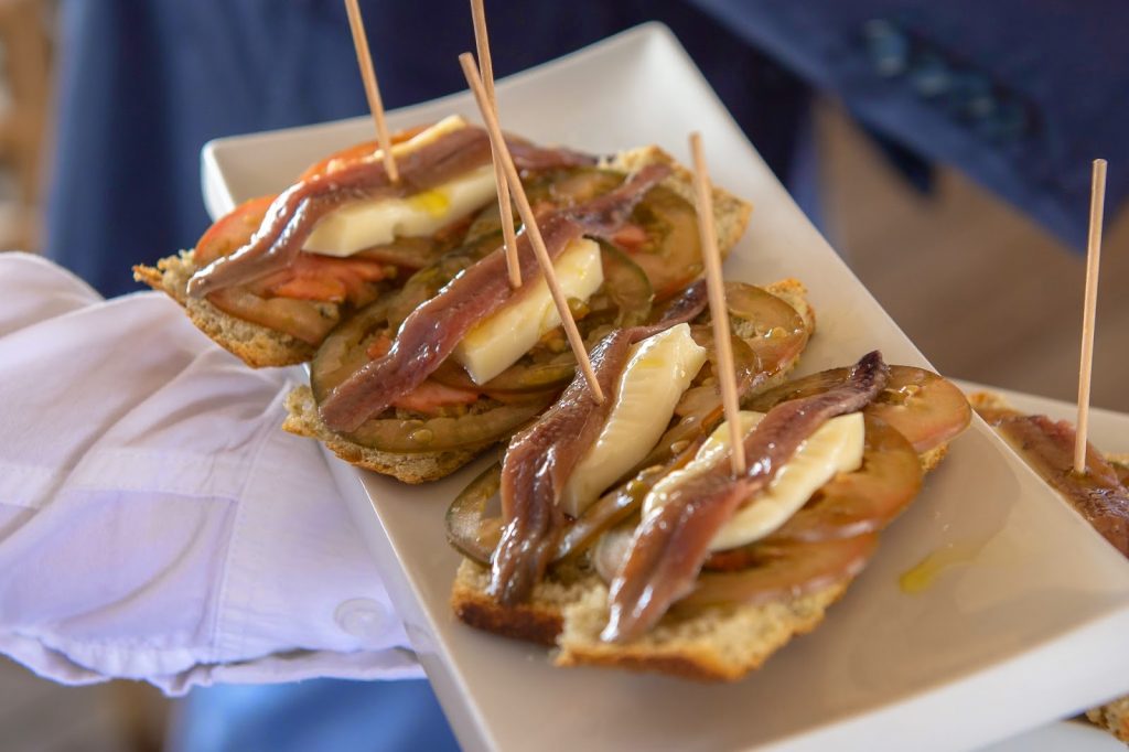 Las vistas son maravillosas y en la terraza se estaba de lujo, además la comida estaba deliciosa. Sirvieron, entre otras cosas, anchoa y queso de Arzúa sobre pan de algas y mantequilla de hierbas; mousse de foie con higo confitado sobre tosta de pasas; flor de cecina con parmesano; mini brioche de Roast Beef con salsa tártara y cebolla crujiente y montadito de solomillo de ternera con cabrales.