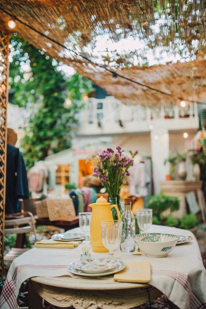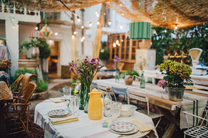 Hoy amanecemos soñando un día más en las vacaciones…Mesas bohemias con un cierto toque aristocrático que evoca la riviera francesa de los años 50, loza llena de historia, servilletas bordadas por la abuela, muebles con pátina original, cristal de la campiña italiana, botellas de leche antiguas que sirven de improvisados floreros….almuerzos a la sombra de un cañizo, todo esto es lo que nos propone Federica Barbadelli en su mágica tienda Federica & co.