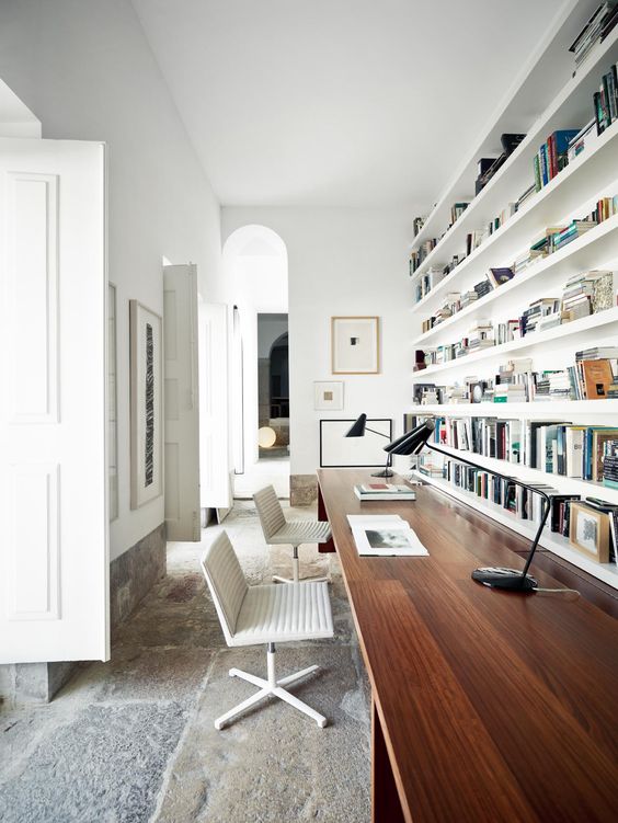 Hay un denominador común en casi todos estos escritorios para estudiar o trabajar en casa, la mesa colocada al lado de una ventana por la que entre mucha luz. Muy recomendable en la medida de las posibilidades que tenga cada casa. Imprescindible una buena lámpara con luz especial para trabajar por la noche y una silla cómoda como es obvio. Por lo demás cada uno elige los elementos de trabajo y decoración que mejor le encajen y necesite.