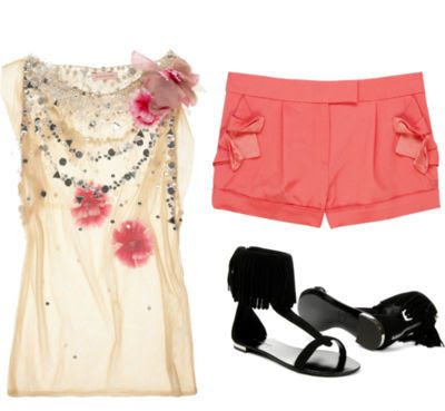 Matthew Williamson Embellished tulle tank top, Matthew Williamson Origami cotton shorts, Balmain sandals